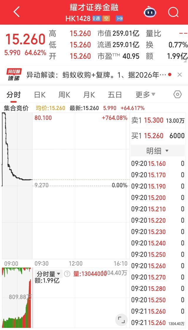 3月17日,截至发稿,耀才证券金融(01428.HK)涨64.62%。根据公告,蚂蚁集团发起的要约收购已通过中国有关部门审批,预计将于3月30日完成交割。