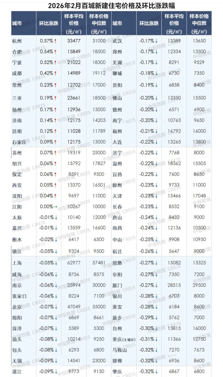 价格方面,中指院监控数据显示,2月百城二手住宅均价12835元/平方米,同比下跌8.78%,跌幅收窄至0.54%。(同期新建住宅均价17107元/平方米,同比微涨2.37%,环比仅跌0.04%)。