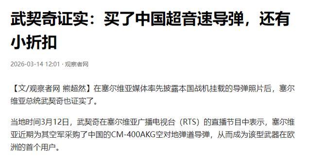 3月12日,武契奇直接在直播里确认了采购这件事,还说因为长期合作拿到了优惠价,以后还会继续买更多中国的弹药装备。