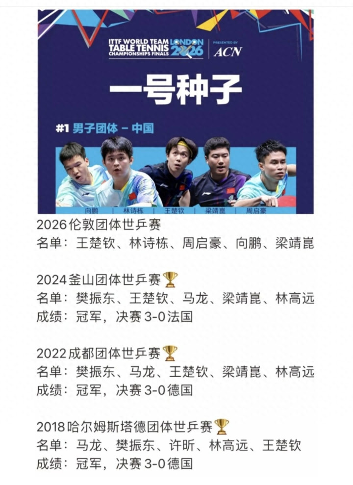 伦敦团体世乒赛是王楚钦第四次参加团体世乒赛,当年18岁时青涩的5号酷拽小伙儿,如今成长为26岁的领军人。网络大V莱维预判:“王楚钦很可能场场一单,别人扛不住这个压力。”